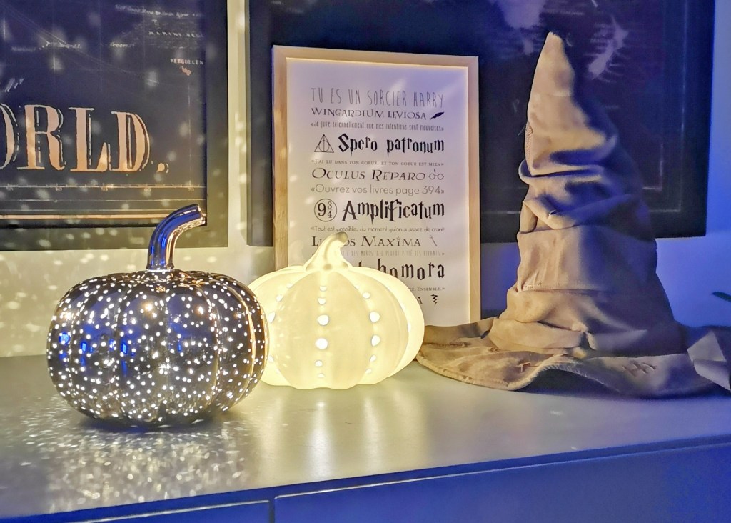 Et last but not least, le corner Harry Potter. Ouaip parce que quand on pense automne chez nous, on pense au marathon de la saga qu’on se refait chaque année. En bon Potter heads, il nous fallait un peu de Poudlard dans nôtre déco. Le Choixpeau de Jeux Dujardin disponible sur le site de la FNAC sort donc de son état de jouet pour devenir un véritable ornement. Et pour l’accompagner, la belle affiche du même thème réalisée par Pauline, créatrice de l’Atelier Typo Déco.
