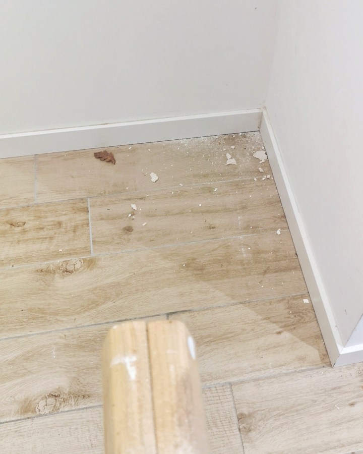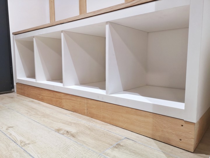 On a pris le soin de laisser de l’espace entre les pieds et le bord du meuble pour venir y imbriquer les plinthes.