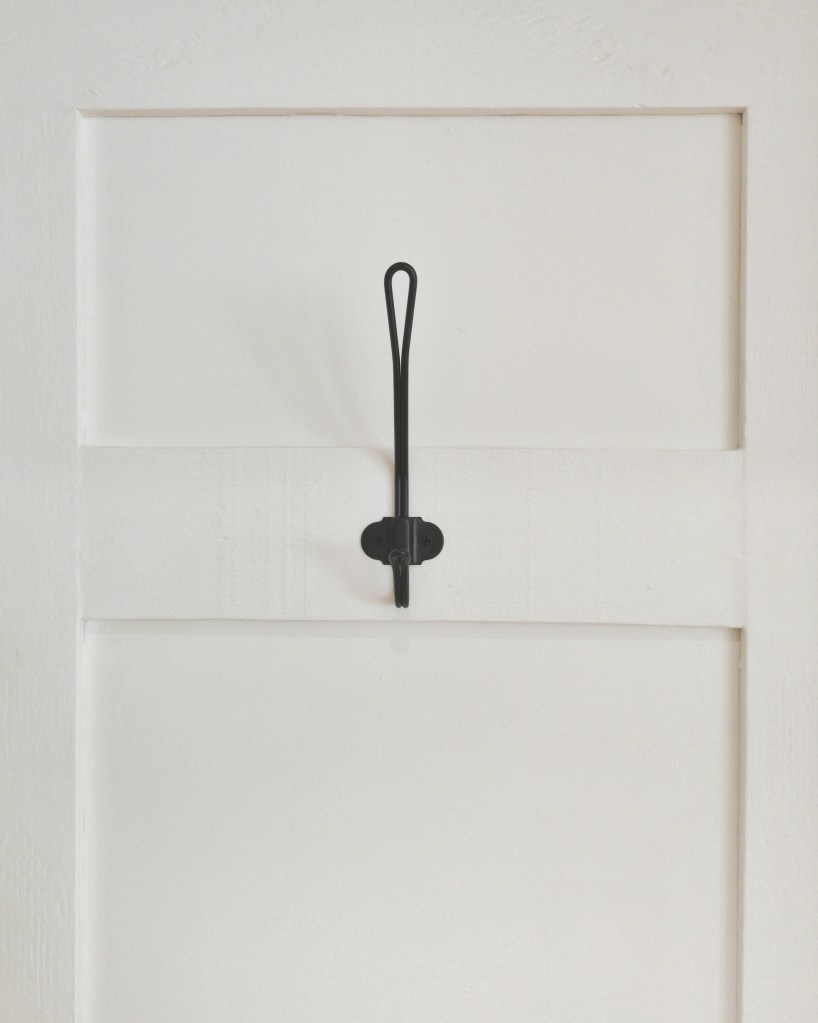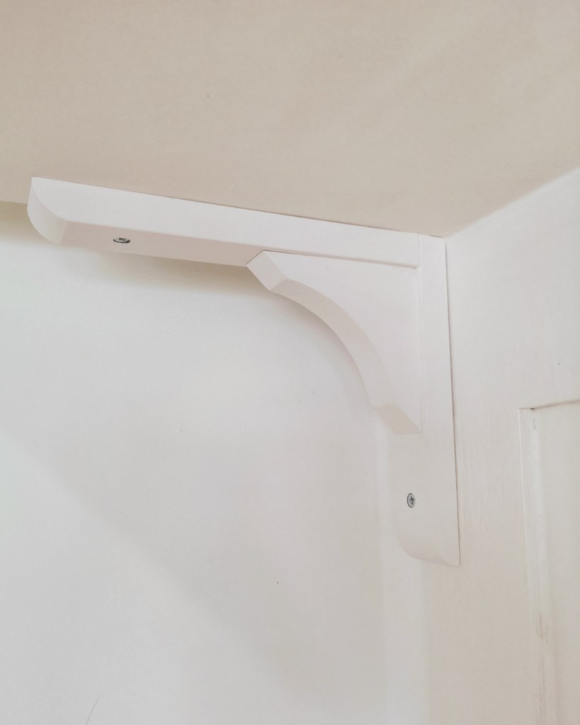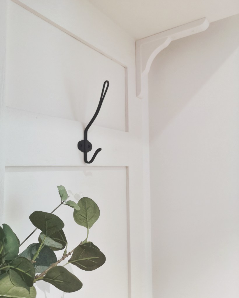 Ne reste plus qu’à installer les patères Svartsjön trouvé à 2,99 €/pièce chez Ikea au rayon salle de bain. Suite à la mésaventure placo, on a décidé d’ajouter des équerres sous l’étagère Hemnes afin de s’assurer qu’elle ne bougerait plus. J’ai trouvé que le modèle Ramshult serait parfait pour un look modern farmhouse.