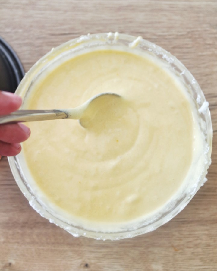 Préchauffez le four 120C°, beurrez et farinez le moule à manqué. Mettez les jaunes d’oeufs, le sucre et le sucre vanillé dans le bol puis fouettez (1 minute vitesse 4). Ajoutez l’huile et le lait et fouettez (1 minute vitesse 2). Ajoutez la levure et la farine et mélanger (20 secondes vitesse 4). Réservez la pâte obtenu dans un bol.