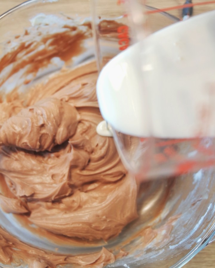 Mélangez le sucre glace et le mascarpone dans un bol puis ajoutez la pâte à tartiner. Incorporez ensuite graduellement la crème liquide en mélangeant au fur et à mesure. Vous me direz des nouvelles de la préparation obtenue. Moi je l’ai trouvé aérienne et délicieuse.