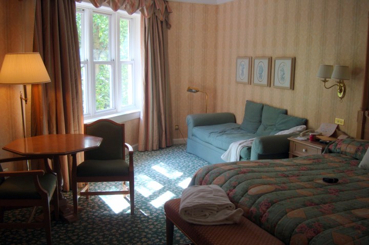 Septembre 2010, MmeLeg0 fête ses 25 ans et ne se voit pas les fêter ailleurs qu’à Disneyland. On se voit repartir à l’hôtel New York mais le prix annoncé par l’agence de voyage (oui à l’époque on passait par eux par flemme de faire nous-même), nous sort un tarif exorbitant. Et là, la dame nous dit « le Disneyland Hotel est moins cher sur cette période« . What ??? Celui dont Mme a toujours dit « on ne pourra jamais le faire » et dont Mr disait toujours « on le fera un jour ». Let’s go !