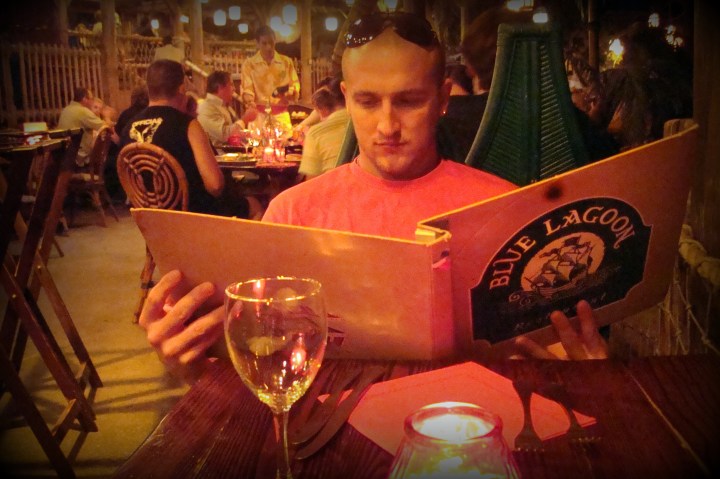 Nous sommes retournés au Blue Lagoon pour découvrir ce qu’en avait fait le nouveau propriétaire, la Capitaine Jack Sparrow. Bien que Jack se soit arrêté à notre table pour discuter avec notre pirate en herbe, nous avons été déçus par le choix proposé à la nouvelle carte. Malgré tout, ça reste un très bel endroit pour manger et faire coucou aux bateaux qui passent.