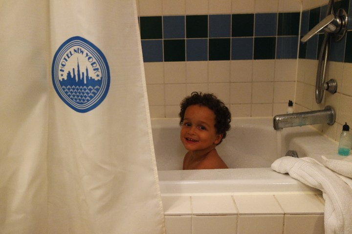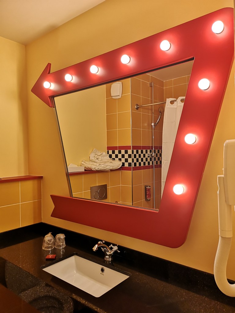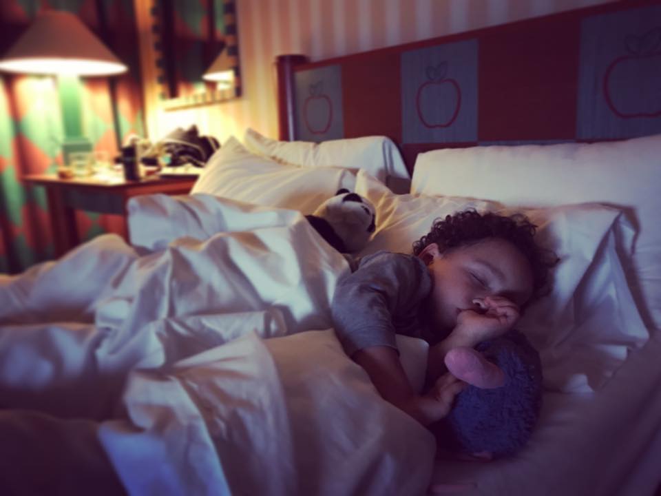 Retour à l’hôtel New York. Nous n’avions pas trop apprécié les bruits de travaux en plein aprèm’ alors qu’on voulait que le petit bout puisse faire la sieste, ça c’était vraiment pas cool (prémices de la transformation en hôtel Marvel ?). Mais sinon nous étions très contents de la chambre, comme d’habitude. Et MiniLeg0 s’est vite senti comme chez lui.