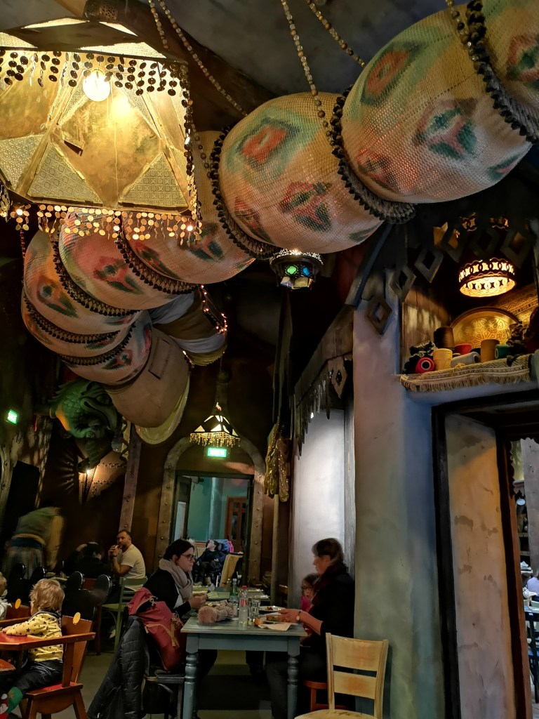Lors de ce séjour, nous avons découvert pour la première fois le restaurant Agrabah Café, un buffet à volonté qui sert des spécialités orientales. Nous avons été très agréablement surpris par la thématisation, la qualité de la nourriture… Et MiniLeg0 est devenu fan de thé à la menthe (il appelait ça de la potion magique, hihi).