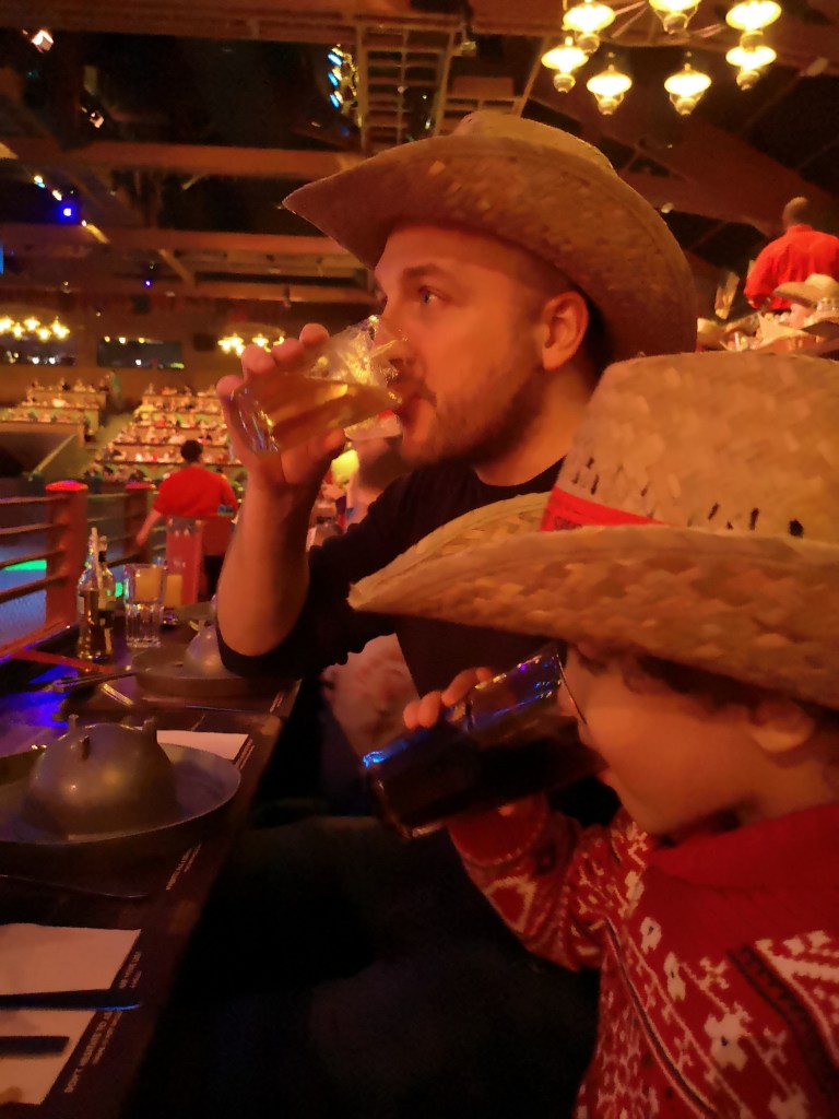 Nous avons eu la chance de pouvoir faire découvrir le Buffalo Bill’s Wild West Show à MiniLeg0 avant qu’il ne soit arrêté. Ce dîner spectacle que nous avions tant aimé faire en couple et que nous avons adoré faire en famille. A la fin du spectacle, nous avions un vrai petit cowboy qui criait Yee-haw sur le chemin del’hôtel. Il nous restera toujours nos chapeaux (go red team !)